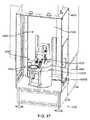 ロボットアーム44は、2つの位置の間を移動可能であってもよい。ロボットアーム44の第1の位置が図6で示されている。図6では、ロボットアーム44はバッファ42の隣に位置決めされ、ステント支持体20を垂直位置に保持することができる。第2の位置では、ロボットアーム44は、ステント取付けおよび取り外し用アセンブリ46の隣に位置決めされ、ステント支持体20を水平位置に保持する。ロボットアーム44が第1位置から第2位置に移動すると、ロボットアーム44は、ステント支持体20をバッファ42からステント取付けおよび取り外し用アセンブリ46へ移動する。ロボットアーム44が第2位置から第1位置へと移動すると、ロボットアーム44は、ステント支持体20をステント取付けおよび取り外し用アセンブリ46からバッファ42へ移動する。  The robot arm 44 may be movable between two positions. The first position of the robot arm 44 is shown in FIG. In FIG. 6, the robot arm 44 is positioned next to the