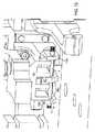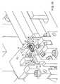 第1および第2位置の間でロボットアームを移動させるために、ロボットアーム44は第1および第2部材64、66を有し、それら部材のそれぞれは、図6で示されるように見た場合に、略三角形の構成を有する。2つの部材64、66の間の接合面68は、垂直位置または水平位置のいずれからも45°にある。第1部材64は、接合面68において第2部材66に対して回転することができる。言い換えると、第1部材64は、接合面68に対して垂直な軸線まわりに回転することができる。第1部材64が、図6で示されている第1位置から180°回転すると、ステント支持体20は、バッファ42における垂直位置からステント取付けおよび取り外し用アセンブリ46のすぐ上の水平位置まで移動される。第1部材64が、図6に示すように、第1位置に回転して戻ると、ステント支持体20は、水平位置から図6で示された垂直位置に移動して戻る。  To move the robot arm between the first and second positions, the robot arm 44 has first and