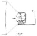 第2支持要素26も、内側方向に小さくなる角度を有する円錐部分32を含み、この角度は、第1支持要素の円錐部分28のテーパー角と同一であっても異なっていてもよい。第2支持要素26は貫通孔を有する。コア要素24の第2端部(自由端)は、第2支持要素26の貫通孔を通って内部にまで突き出ることができ、その孔に圧入または摩擦嵌めして、第2支持要素26がコア要素24上で自由に移動するのを防ぐことができる。第2支持要素26は外周溝34を含んでもよい。  The