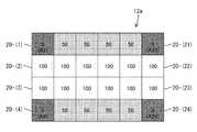 なお、図5、図7および図8においては、説明の便宜上、バックライト12の照射面12aが、エリアA1からエリアA24までの24個のエリアに分割された場合を示す。また、照射面12aを分割する態様、例えば、分割エリアの平面形状は、図5、図7および図8に示されるものに限られない。例えば、分割された各エリアの面積および形状は異なるものであってもよい。要は、分割された各エリア内の各発光素子の電力が個別に制御されるものであればよい。  5, FIG. 7 and FIG. 8 show a case where the