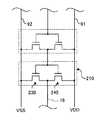 図10において点線で囲まれた回路は、一つのインバーター回路210である。インバーター回路210は、第1トランジスター230及び第2トランジスター240により構成されている。  In FIG. 10, a circuit surrounded by a dotted line is one