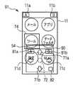 第1の特定機能表示81aと、第2の特定機能表示81bとは、それぞれ、図4に示した第1の特定機能表示11aと、第2の特定機能表示11bに相当するものである。第1の特定機能表示11aと第2の特定機能表示11bは、LCD11の上角に表示され、フォーカス表示74の対象外である。このため、移動通信装置1を片手で使用している場合に、第1の特定機能表示11aや第2の特定機能表示11bに指40で触れることが難しく、指40で触れるためには、移動通信装置1を持ちかえる必要がある。これに対して、第1の特定機能表示81a及び第2の特定機能表示81bは、第1の操作パッド80内に表示されているため、移動通信装置1を片手で使用している場合でも、容易に指40で触れることができる。 The first