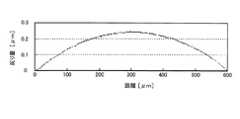 その典型が静電駆動型MEMSミラー装置で問題となるドリフト現象である。ドリフトとは、駆動電極8003−1〜8003−4に印加した電圧で決まる本来の角度からミラー8103の傾斜角θが変位することである。このドリフトの問題は従来よりその存在が知られ、ドリフトの原因が電荷の移動と関係があることは理解されてきた。すなわち、電極間やその他の浮遊容量への充電に要する時間に関係したドリフトや電極周辺の帯電による影響などである。しかし、ドリフト現象の詳しい機構は解明されておらず、したがってドリフトを抑制するための対策も経験的に行われ、その対策の効果が得られたり得られなかったりと実用的な方法が確立されているとは言いがたい状況であった。  A typical example is a drift phenomenon which becomes a problem in the electrostatic drive type MEMS mirror device. The drift is that the tilt angle θ of the