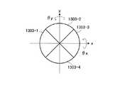 一方、上部基板8101の内側には円環状のジンバル8102が設けられ、さらにジンバル8102の内側にミラー8103が設けられている。ミラー8103の上面には、例えば3層のTi/Pt/Au層(不図示)が形成されている。上部基板8101とジンバル8102とは、180゜隔てた2か所においてトーションバネ8104により連結され、同様にジンバル8102とミラー8103とは、180゜隔てた2か所においてトーションバネ8105により連結されている。一対のトーションバネ8104を通るx軸と、一対のトーションバネ8105を通るy軸は直交する。結果として、ミラー8103は、x軸とy軸の2軸を回動軸として回動することができる。上部基板8101、ジンバル8102、ミラー8103、トーションバネ8104,8105は単結晶シリコンで一体形成されている。As shown in FIGS. 107 and 108, four drive electrodes 8003-1 to 8003-4 are provided in the central portion of the