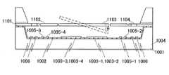 第6の参考例では、配線113−1〜113−4を駆動電極103−1〜103−4と同一平面に形成しているが、図10に示すように、配線113−1〜113−4と駆動電極103−1〜103−4とを別の平面に形成するようにしてもよい。本参考例の場合、絶縁層102上に配線113−1〜113−4を形成し、絶縁層102及び配線113−1〜113−4上に絶縁層115を堆積し、絶縁層115上に駆動電極103−1〜103−4及び金属層114を形成する。このとき、絶縁層102上には、金属層114と接続する配線116も配線113−1〜113−4と同時に形成し、配線116を介して金属層114にミラー153と同じ第2の電位または第2の電位にオフセットを付加した電位を与える。これにより、表層での配線の引き回しを行うことなく、金属層114への電気的接続を容易に行うことができる。  In the sixth reference example, the wirings 113-1 to 113-4 are formed in the same plane as the drive electrodes 103-1 to 103-4. However, as shown in FIG. 10, the wirings 113-1 to 113-4 are formed. The drive electrodes 103-1 to 103-4 may be formed on different planes. In the case of this reference example, wirings 113-1 to 113-4 are formed on the insulating