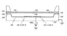 そこで、本参考例では、2つの対処法に基づき、ミラー153の駆動に関わりを持つ部位(ミラー153、駆動電極103−1〜103−4あるいは駆動電極103−1〜103−4近傍の構造物)に帯電防止構造を設ける。  Therefore, in this reference example, based on two countermeasures, a part related to driving of the mirror 153 (a structure near the