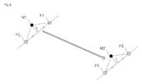 ステップS12において,制御部20は,第2中間点M2の座標を確定する。すなわち,まず,制御部20は,図3に示されるように,ステップS11においてスライド入力がリリースされる直前に座標入力部2により検知された点を,第3点目のタッチ点P3及び第4点目のタッチ点P4と認定する。なお,第3点目のタッチ点P3は,第1点目のタッチ点P1から継続したスライド入力がリリースされる直前に座標入力部6により検出されたタッチ点である。また,第4点目のタッチ点P4は,第2点目のタッチ点P2から継続したスライド入力がリリースされる直前に,座標入力部6により検出されたタッチ点である。そして,制御部20は,第3点目のタッチ点P3の座標及び第4点目のタッチ点P4の座標に基づいて,第2中間点M2の座標を算出する。第2中間点M2の座標を算出するための条件は,第1中間点M1の座標を算出するための条件と同じものとすればよい。第2中間点M2の座標は,座標記憶部6に記憶される。第2中間点M2の座標が求まると,ステップS13へ進む。 In step S12, the