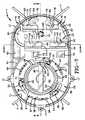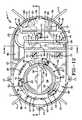 クリップ19が図18の矢印Bに示されるようなアーチ状開口83を通って筐体本体9に再挿入されると、これらの工程と逆のことが起こる。これは、上述のように、クリップスロット80中のボス75の作用によってロッキングアーム69を回動させる。ここでも、この動きが、図7Aに示されるようなロッキングディスク上の歯車の歯78と歯車の歯74との係合によりロッキングディスク35をわずかに回転させ、これにより、爪の歯43が筐体頂部カバープレート15上に形成されたボス52のアーチ状凹部中のロッキング爪ボス41の移動によってスプールの歯28を係合する。このロッキングディスク35の移動は次に、ロッキングストリップ51および特にロッキングタイン49を図16の位置から図13の位置に移動させ、ここで、ロッキングタインに対する自然なばねの付勢により、ロッキングタイン49は自動的に凹部47の中に移動し、遠端50が凹部肩54と係合して、ロッキングタインが再び図10の位置から図16の位置まで鍵66の使用によって凹部から再び外れるまで、しっかり固定されロックされた位置にさまざまな部材を配置する。  When the