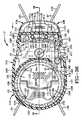 ラチェット機構は、一般的に35で示されるロッキングディスク(図4A)を含み、ロッキングディスクは、一方端にほぼ円形の構成を有し、当該一方端には中央部円形開口37が形成され、その中に複数の可撓性ロッキング爪39がアーチ状片持ち梁の態様で延在している。各々のロッキング爪は、一連の歯車の歯43に隣接して遠端に形成されるカム(camming)突起または柱41を有する。ロッキングディスク35は、以下にさらに論じられるように、ロッキングディスク反対端35の端部にほぼ矩形のセグメント45を有し、このセグメントは、1対のロッキングタイン(tine)49を受けてロッキングディスク35をロック位置にしっかり固定するための1対の先細凹部47を有するように形成される。タイン49は好ましくは金属ロッキングストリップ51から一体に形成され、それから外向きに付勢されると、図7、図9および図10に特に示されるように回転不可能なロック位置にロッキングディスク35をしっかり固定する。  The ratchet mechanism includes a locking disk, generally indicated at 35 (FIG. 4A), which has a generally circular configuration at one end with a central