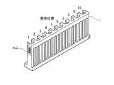 分析後ラック保持部34は、平面視において四角形をなしており、その幅はサンプルラックLの幅より若干大きくなっている。この分析後ラック保持部34は、周囲の面よりも一段低く形成されており、その上面に分析が完了したサンプルラックLが載置される。分析後ラック保持部34は、上記のラック搬送部35に連なっており、上述したように、ラック送出部39によって、ラック搬送部35からサンプルラックLが送り込まれるようになっている。分析後ラック保持部34の両側面からは、内側へ向けてラック送込部34bが突出可能に設けられている。ラック送出部39によりサンプルラックLが搬入されたときに、このラック送込部34bが突出することによりサンプルラックLと係合し、この状態で図中Y2方向(前方。ラック搬送部321に近接する方向。)へ移動することにより、サンプルラックLがY2方向へと移送される。かかるラック送込部34bは、分析後ラック保持部34の下方に設けられたステッピングモータ34cによって駆動可能に構成されている。  The post-analysis