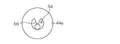 抜け止め手段を設けた針収容孔54の第2の実施の形態を図19に示す。図19は、針収容孔54を穿刺管体35の挿入方向から示した平面図である。同図に示すように、針収容孔54の内部には抜け止め手段として穿刺管体35を針収容孔54の側壁面との間で狭持するための凸部66(凸部材)が設けられている。針収容孔54は穿刺管体35の外径よりも大きな円柱形状を基調形状とし、凸部66はその孔の側壁面の一部から孔の中央に向けて突出するように配置される。また、凸部66の先端部は丸い形状に形成されている。  A second embodiment of the