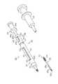 また、ケーシング40の周胴部には軸線方向に所定の長さのガイド孔42が設けられ、スライダ41にはこのガイド孔42に挿通されるピン43が取り付けられている。ガイド孔42の先端は概略90°曲折されて、円周方向に向けた位置決め孔部42bとなっている。ガイド孔42の後端はケーシング40の後端まで延設されている。  In addition, a