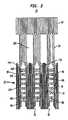 係止部材の構造によって、係止部材は周方向に潰れることができる。そのため、図2に示すステント体が潰れた形態では、接合ストラット54および係合ストラット56は、実質的に軸線方向に延びている。ステント体が潰れた状態にある間、係合要素50は、頂部18同士が互いの方向に向かう周方向での動きを制限しない。また、係合要素50が各支持ストラット30間の空隙150に配置されているため、潰れた状態の間、係合要素は支持ストラット30と干渉しない。潰れた状態のステント体の直径は、係合要素によって増大しない。  Depending on the structure of the locking member, the locking member can be crushed in the circumferential direction. Therefore, in the form in which the stent body shown in FIG. 2 is crushed, the