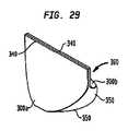 図28は、概して図20に類似している。しかし、図28は二尖設計用の弁尖300を示している。図28の弁尖は、図24に関連して上述した特徴と同様の特徴の多くを有している。しかし、図28の設計は、取り付け用の2つの楕円形接合柱のみを収容するように(左右に)細長くなっている。  FIG. 28 is generally similar to FIG. However, FIG. 28 shows a