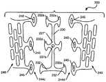 外側要素および内側要素の少なくとも一方が、互いに交差して複数の交差点および開口部を規定する複数のセグメントから形成されたマトリクス構造を含み、交差点の少なくとも一部がそれぞれ第1の角および第2の角を規定し、第1の角が実質的に垂直方向に配向された鋭角であり、かつ第2の角が実質的に水平方向に配向された鈍角である、本発明101の履物物品。