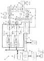 図4は、電力線モデム14の全2重モデム14の実施を示す。モデム14の構造は、モデム14と電力線48間のインターフェースを除いて図3に示される半2重モデム14と殆ど同一である。図4に見られるように、送信/受信スイッチ36は取り除かれている。代わりに、第1の周波数F1で動作する1つのカプラー34が送信用に使用され、かつ第2の周波数F2で動作する第2のカプラー34が受信用に使用される。例えば、1.2および1.6GHzの周波数が、電力線48を通じて同時に送信しかつ受信するために使用できるであろう。モデム14における構造上の相違に加えて、FPGA46のためにEPROM48に記憶されるソフトウェアプログラムは、2つの異なる周波数において全2重動作をもたらすように変更される必要性も、またあるであろう。  FIG. 4 shows an implementation of the