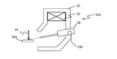 なお、上記では、ガス銃28を対物レンズ磁路23に取り付ける構成を例に挙げて説明してきたが、ガス銃28を取り付ける箇所はこれに限られず、噴出孔130を、試料30上の荷電ビーム照射部分に近接させられるように、ガス銃28を鏡体150に取り付ければ良い。これには、例えば、対物レンズ32の上方側の鏡体150にガス銃28を取り付け、ブースター電極18の開口部にガスノズル31を上方から通し、噴出孔130が試料30上の荷電ビーム照射部分に近接するように構成するものがある。  In the above description, the configuration in which the