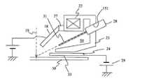 図5は電子ビームデポを行う際のガスノズル31の位置、及び各電極18,24への電圧の印加状態を示す図である。  FIG. 5 is a diagram showing the position of the
