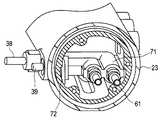 図23から図26に示すように、ここでは、第1および第2の参考例と同様に、送水口金38および送気口金39の装着に関しても、送水口金38および送気口金39は、コネクタケース23内の強度部材であるフレーム61および送気送水ブロック71(図23参照)とガタ付防止板72を介して固定される。  As shown in FIGS. 23 to 26, here, as in the first and second reference examples, regarding the mounting of the