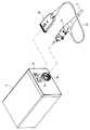 なお、光源プラグ20の上下方向は、上述したように、周辺機器に接続された状態における上下方向であって、ここでは、コネクタケース23に設けられた銘板36が上部側であって、この銘板36が光源プラグ20の上部を示す指標となっている。  As described above, the vertical direction of the