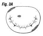 これらの病状のうちのいくつかが、図4−8で概略的に図示されており、図3Aおよび3Bは、平面図と、前尖および後尖を横断する概略断面図とで、正常な僧帽弁を図示している。図4Aおよび4Bも、平面図および概略断面図で僧帽弁を示し、図中、弁輪は拡張および変形され、僧帽逆流を引き起こしている。図5Aおよび5Bは、両方とも僧帽逆流を引き起こしている、破裂腱索および伸長腱索を伴う僧帽弁を図示する。図6Aおよび6Bは、過剰組織および不規則に肥大した弁尖を伴う、バーロー病の症状を示す。バーロー病は、若年人口で最も頻繁に見られ、弁逆流の発症前に長期にわたって進化する。図7Aおよび7Bは、菲薄化弁尖と、過剰組織とを伴う、弾性線維欠陥を有する僧帽弁の図である。最初にCarpentierによって説明された弾性線維欠陥は、通常、より高齢者で見られ、弁逆流の前に短期にわたって進化する。解剖学的特性は、過剰な弁尖組織がない、中程度に拡大した腎臓形の弁口を含む。弁尖組織は、弾性線維束の変性を見せる。最後に、図8Aおよび8Bは、過剰組織および薄い組織と、伸長腱索とを伴う、マルファン病における僧帽弁を図示する。マルファン病は、あらゆる年齢に見られる遺伝障害である。それは、逆流の発症前に長期にわたって進化する。弁輪が重度に拡張および変形され、腱索が伸長され、弁尖が薄く、変性している。 Some of these medical conditions are schematically illustrated in FIGS. 4-8, and FIGS. 3A and 3B show normal monks in plan and cross-sectional views across the anterior and posterior cusps. A cap valve is illustrated. 4A and 4B also show the mitral valve in plan view and schematic cross-section, where the annulus is expanded and deformed, causing mitral regurgitation. FIGS. 5A and 5B illustrate a mitral valve with a ruptured and extended chordae both causing mitral regurgitation. 6A and 6B show the symptoms of Barlow's disease with excess tissue and irregularly enlarged leaflets. Barlow disease is most often seen in the young population and evolves over time before the onset of valve regurgitation. 7A and 7B are views of a mitral valve with elastic fiber defects with thinned leaflets and excess tissue. Elastic fiber defects, first described by Carpentier, are usually seen in older people and evolve over a short period of time before valve regurgitation. Anatomical features include a moderately enlarged kidney-shaped valve mouth that is free of excess leaflet tissue. The leaflet tissue shows elastic fiber bundle degeneration. Finally, FIGS. 8A and 8B illustrate a mitral valve in Marfan disease with excess and thin tissue and elongated chordae. Marfan disease is a genetic disorder found at all ages. It evolves over time before the onset of reflux. The annulus is severely dilated and deformed, the chords are stretched, the leaflets are thin and degenerated.