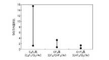 図9は、C4F6系、CF4系及びCHF3系のエッチングガスを用いた場合におけるSiN膜に対するSiO膜のエッチング選択比(SiO/SiN選択比)を示している。なお、C4F6系のエッチングガスとしては、C4F6/O2/Arガスを用いた。また、CF4系のエッチングガスとしては、CF4/CHF3/Arガスを用いた。また、CHF3系のエッチングガスとしては、CHF3/O2/Arガスを用いた。FIG. 9 shows the etching selectivity (SiO / SiN selectivity) of the SiO film relative to the SiN film when C4 F6 , CF4, and CHF3 etching gases are used.As the C 4F 6 -based etchinggas, withC 4 F 6 / O 2 / Ar gas. In addition, CF4 / CHF3 / Ar gas was used as the CF4 etching gas. Further, CHF3 / O2 / Ar gas was used as the CHF3 -based etching gas.