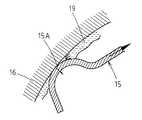その結果、現実には、摺接突起部15Aが固定壁16の内周面に弾力的に押し付けられて摩擦抵抗付与ばね材15が弾性変形しているので、摺接突起部15Aが物理的に移動するのではないが、固定壁16の内周面に対する押圧力が減少して、摺接突起部15Aと固定壁16との間に生じる摩擦抵抗が減少する。したがって、静止摩擦抵抗に比較して動摩擦抵抗が小さくなり、処置具起上操作レバー7を軽い力で回動操作することができる。  As a result, in reality, the sliding