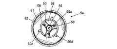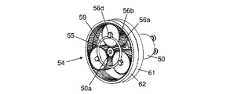 ばねカラー59は、プラネットホイール56と中空ホイール(61と62)との間のバックラッシュ(ガタ)を排除する。サンギヤ55の(すなわち、モータシャフト50aの)回転と比較した、この相対回転の伝達比率は、2つの中空ホイール(61と62)の異なる構成の程度、例えば、ピッチ直径の相対差の程度に(及び、プラネットホイール56の2つの歯(56aと56b)の異なる構成の程度に)依存する。  The