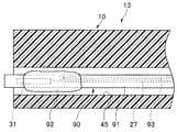 本実施形態の内視鏡用器具90であるカテーテル91は、図1に示す鉗子口15aを介して挿入部13内の挿通チャンネル45に挿入される。  The