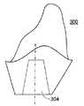 図13および14は、インプラント302の上部310の別の実施例のクローズアップを示す。上部310は、ストレスが患者によって作用されるときに、例えば、噛んでいる間インプラント302上のアバットメント300の回転を防止する一つ以上の面取りされた部分312を含む。  FIGS. 13 and 14 show a close-up of another example of the