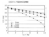 図7は寸法CDのフレア量依存性の説明図であり、ガウシアン関数の標準偏差(σ)を変数とした場合の計算結果を示したものである。ここでは、σ=0nm、5nm、10nm、15nmの4つの場合を示している。 FIG. 7 is an explanatory diagram of the flare amount dependency of the dimension CD, and shows the calculation result when the standard deviation (σ) of the Gaussian function is used as a variable. Here, four cases of σ = 0 nm, 5 nm, 10 nm, and 15 nm are shown.