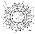 −一変形として、サブアセンブリは、少なくとも1つの環状結合フランジにより、タービンのホイールの端部に取り付けられる。このフランジは、相フランジに取り付けることができ、相フランジの上に係留脚部が取り付けられる。フランジ又は相フランジは、遠心力の効果で係留脚部のヒール部の圧力を受けることができる、フープを形成すると、有利である。一変形として、少なくとも1つのフープが、結合フランジとは独立して係留脚部の周りに配置される。 As a variant, the subassembly is attached to the end of the turbine wheel by means of at least one annular coupling flange. The flange can be attached to the companion flange, and a mooring leg is attached on the companion flange. Advantageously, the flange or companion flange forms a hoop that can receive the pressure of the heel of the anchoring leg under the effect of centrifugal force. As a variant, at least one hoop is arranged around the anchoring leg independently of the coupling flange.