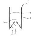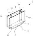 図3は、芯材2の展開図であり、底板部21は、図3中二点鎖線で示す中心線Cに沿って屈曲可能となるように加工して、この中芯線Cを山折り線として二つ折り可能とされている。そして、底板部21の長辺側の端縁21a,21bには、図3中鎖線で示す谷折り線に沿って屈曲可能となるように、それぞれ第一側板部221,222が連接されている。