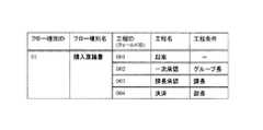 図4にフロー定義304の一例を示す。この例では、フロー定義304は、当該ワークフローの種別の識別情報であるフロー種別IDと、当該種別の名称であるフロー種別名を含む。また、当該ワークフローに含まれる各工程の識別情報(工程ID)、名称(工程名)、及び各工程を実行すべきユーザが満たすべき条件(工程条件)を含んでいる。この例では、工程「起案」は誰でも実行でき、工程「一次承認」は「グループ長」の役職にあるものだけが実行できる。  FIG. 4 shows an example of the