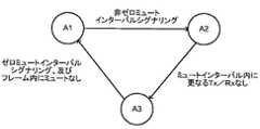 無線通信の間、フレームは、ミュートインターバルを含んでいても含んでいなくてもよい。ゼロミュートインターバルシグナリング(zero mute interval signaling)は、ミュートインターバルなしのフレームを示す。非ゼロミュートインターバルシグナリング(non-zero mute interval signaling)は、ミュートインターバルを含むフレームを示す。フレームがミュートインターバルを含む場合であっても、これを非ゼロミュートインターバルシグナリングと呼んでもよい。無線局、例えば、基地局又は移動機器内では、非ゼロミュートシグナリングに応じて、異なる処理が行われる。無線通信は、例えば、遅延ありのミュート(delayed-mute)又は即座のミュート(immediate-mute)の動作手続き等の手続きを用いて動作することができる。TDDシステムは、非ゼロミュートインターバルシグナリングのために、遅延ありのミュート又は即座のミュートの動作手続きを用いることができる。 During wireless communication, the frame may or may not include a mute interval. Zero mute interval signaling indicates a frame without a mute interval. Non-zero mute interval signaling indicates a frame including a mute interval. Even if the frame includes a mute interval, this may be referred to as non-zero mute interval signaling. In a radio station, for example, a base station or a mobile device, different processing is performed according to non-zero mute signaling. Wireless communication can operate using procedures such as, for example, a delayed-mute or immediate-mute operation procedure. The TDD system can use a delayed mute or immediate mute operating procedure for non-zero mute interval signaling.