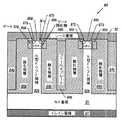 各酸化物層88の中には、ドリフト領域及び基板の半導体材料から完全に絶縁された状態で、フィールドプレート部材84が配置され、ソース電極92と電気的に接続されている。N型ドリフト領域82、酸化物層88、フィールドプレート部材84は、全体として横方向に延びる平行な層構造からなる。これはオン状態において電流が流れる方向に対して垂直な方向である。トランジスタ80がオン状態のとき、電流は、ドレイン電極91から平行なN型ドリフト領域82及びPボディ領域の側壁に形成されたMOSチャネルを通り、ソース電極92に向かって縦方向に流れる。  In each oxide layer 88, a field plate member 84 is disposed in a state of being completely insulated from the drift region and the semiconductor material of the substrate, and is electrically connected to the