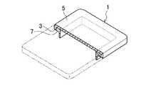 図1は、車両の天井に形成された窓用開口部に該開口部を閉塞するように取り付けられる樹脂製窓1を示す。この樹脂製窓1を得るには、まず、裏面側へ向けて突出する略矩形環状の周壁部3を周縁に有する透光性の略矩形板状樹脂パネル5を射出成形する。その後、樹脂パネル5の裏面側に上記周壁部3に内側から接するように該周壁部3に沿って不透光性の枠部7を略矩形環状に射出成形する。  FIG. 1 shows a
