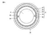 図5(a)は、ダイヤル63の表側から見た図であり、図5(b)は、ダイヤル63の裏側から見た図である。このダイヤル63を操作すること(右回転/左回転させること)により、ボール4による第1軸方向、第2軸方向とは異なる第3軸方向(例えばZ軸方向)に対応するエンコーダを制御し、当該第3軸方向についての指示を入力することが可能である。  FIG. 5A is a diagram viewed from the front side of the