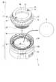 回転方向マーク64は、例えばリング62の表面に設けられ、第2のケーシング6を第1のケーシング5から取り外す際のリング62の回転方向を示す。なお、本実施形態では、回転方向マーク64が示す方向を、第2のケーシング6を第1のケーシング5から取り外す場合のリングの回転方向とした。これとは反対に、回転方向マーク64が示す方向を、第2のケーシング6を第1のケーシング5に取り付ける場合のリングの回転方向とする構成であってもよい。  The