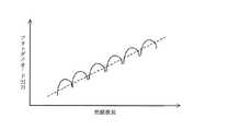 図5は、半導体レーザ1の発振波長をある一定の割合で変化させたときの発振波長とフォトダイオード2の出力波形との関係を示す図である。式(1)に示したL=qλ/2を満足したときに、戻り光と光共振器内のレーザ光の位相差が0°(同位相)になって、戻り光と光共振器内のレーザ光とが最も強め合い、L=qλ/2+λ/4のときに、位相差が180°(逆位相)になって、戻り光と光共振器内のレーザ光とが最も弱め合う。そのため、半導体レーザ1の発振波長を変化させていくと、レーザ出力が強くなるところと弱くなるところとが交互に繰り返し現れ、このときのレーザ出力をフォトダイオード2で検出すると、図5に示すように一定周期の階段状の波形が得られる。このような波形は一般的には干渉縞と呼ばれる。この階段状の波形、すなわち干渉縞の1つ1つがMHPである。前記のとおり、ある一定時間において半導体レーザ1の発振波長を変化させた場合、測定距離に比例してMHPの数は変化する。  FIG. 5 is a diagram showing the relationship between the oscillation wavelength and the output waveform of the