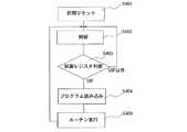 半導体装置が有するCPU102は、制御レジスタ117にコード抽出回路118からの信号の書き込みがあると動作を開始する(S402)。CPU102は、制御レジスタ117内の制御コードにSOF(Start  Of  Frame)が含まれているかを判断する(S403)。SOFが含まれていれば、ROM103からメインプログラムを読み込む(S404)。次に、メインプログラムを実行する(S409)。一方、制御レジスタ117の制御コードにSOFが含まれていなければ初期リセット401後の状態に戻る。なお、CPU102は、メインプログラムの実行終了後、初期リセット(S401)後の状態に戻る。The