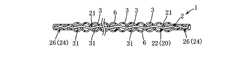 (n)前記各導電接続部材は、縦方向に接触可能に隣接して電気的に接続された2つの第1,第2横糸であって各々が複数の縦糸の表面と裏面とに交互に接触するジグザグ状態に織られる第1,第2横糸からなり、前記第1横糸と第2横糸とで縦糸を表面側と裏面側から挟持するように織られた。In addition to the configuration of the sixteenth aspect, the following configuration may be adopted.