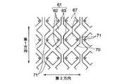 図3に示すように、投影型の容量結合方式として構成された本実施の形態におけるタッチパネルセンサ層60において、センサ部60aは、並列配置された複数の第1単位センサ61と、並列配置された複数の第2単位センサ66と、を有している。各第1単位センサ61は、基材45の一側の面と平行な第1方向に延び、各第2単位センサ66は、第1方向と交差する方向であって基材45の一側の面と平行な第2方向に、延びている。  As shown in FIG. 3, in the touch
