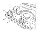 図3は、底カバー部材から上カバー部材を取り外して、底面カバー部材の背面側を示した斜視図である。また図4は、図3と同じく上カバー部材を取り外し、底カバー部材内側の各種部品を示した斜視図である。 FIG. 3 is a perspective view showing the back side of the bottom cover member with the top cover member removed from the bottom cover member. 4 is a perspective view showing various components inside the bottom cover member with the top cover member removed, similar to FIG.