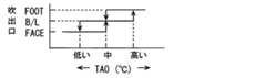 ステップ140において目標吹出温度TAOを算出したら、ステップ150にて、例えば、予めROMに記憶された図5および図6に示す特性図(マップ)から、目標吹出温度TAOに対応する吸込口モードおよび吹出口モード(吹出モード)を決定する。なお、コントロールパネルP上において吸込口モードおよび吹出口モードが手動操作により設定されている場合には、その設定モードに決定する。  When the target outlet temperature TAO is calculated in