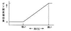 ステップ150では、上記したように吹出モードを決定したら、例えば、予めROMに記憶された図7に示す特性図(マップ)から、湿度センサ76が検出する内気の相対湿度RHに対応して、デフロスタ開口部18の開度を増加させる。図7に例示するように、内気の相対湿度RHが、所定値以上である場合には、相対湿度RHの増大に応じてデフロスタ開度の増加量が増大するように、デフロスタ開口部18を開口する。  In
