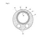 なお、湾曲シース部17の外周面には、長手方向に沿って目盛り79が設けられ、湾曲シース部17の挿入長さ、つまり、外套管15への長手方向挿入位置が判読可能となっている。また、湾曲シース部17は、図3に示す外套管15の連通孔23に挿通されて、外套管15を湾曲するが、この外套管15の案内孔21が外套管15の中心軸から偏心することで、案内孔21の偏心側における外套管15の肉厚が薄くなり、外套管15を湾曲させやすくなっている。  A