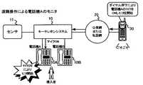 あるいは、発報先の遠隔電話機30および/または外線発信先の外線電話装置40の遠隔操作により、キーテレホンシステム10の内線電話機A  10A、内線電話機B  10Bのマイクから収集される周辺の音響のモニタ内容を録音するようにすることもできる。  Alternatively, the peripheral sound collected from the microphones of the