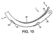 下部チューブ案内部材のチューブ案内面もまた、概して内側に湾曲している。下部チューブ案内部材は、厚さが略均一であり、細長い部材から横方向にかつ下方向に、すなわち細長い部材の側縁の、細長い部材の下面25に近いが同じ高さではない位置から、延在している。下部チューブ案内部材は、細長い部材の下面まで下方に延在し、使用時に保持されている気管内チューブにわたって湾曲し、横方向にかつ上方に湾曲して、保持されている気管内チューブの下面の下に延在しかつそれを案内する。  The tube guide surface of the lower tube guide member is also generally curved inward. The lower tube guide member is substantially uniform in thickness and extends laterally and downwardly from the elongate member, i.e., from the side of the elongate member close to the