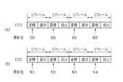 これに対して、通常光画像モードから特殊光画像モードに切り替えられると、図3(B)に示すように、まず最初に、1フレームの取得期間内で、第1狭帯域光N1を光電変換して信号電荷を蓄積するステップと、蓄積した信号電荷を第1狭帯域撮像信号として読み出すステップとの合計2つの動作が行なわれる。第1狭帯域撮像信号の読み出しが完了すると、1フレームの取得期間内で、第2狭帯域光N2を光電変換して信号電荷を蓄積するステップと、蓄積した信号電荷を第2狭帯域撮像信号として読み出すステップとが行なわれる。第2狭帯域撮像信号の読み出しが完了すると、1フレームの取得期間内で、第3狭帯域光N3を光電変換して信号電荷を蓄積するステップと、蓄積した信号電荷を第3狭帯域撮像信号として読み出すステップとが行なわれる。第3狭帯域撮像信号の読み出しが完了すると、1フレームの取得期間内で、第4狭帯域光N4を光電変換して信号電荷を蓄積するステップと、蓄積した信号電荷を第4狭帯域撮像信号として読み出すステップとが行なわれる。 In contrast, when the normal light image mode is switched to the special light image mode, as shown in FIG. 3B, first, the first narrowband light N1 is photoelectrically converted within the acquisition period of one frame. Thus, a total of two operations are performed: a step of accumulating signal charges, and a step of reading the accumulated signal charges as the first narrowband imaging signal. When the reading of the first narrowband imaging signal is completed, the step of photoelectrically converting the second narrowband light N2 to accumulate the signal charge within the acquisition period of one frame, and the accumulated signal charge to the second narrowband imaging signal Are read out. When the reading of the second narrowband imaging signal is completed, the step of photoelectrically converting the third narrowband light N3 and accumulating the signal charge within the acquisition period of one frame, and the accumulated signal charge as the third narrowband imaging signal Are read out. When the reading of the third narrowband imaging signal is completed, a step of photoelectrically converting the fourth narrowband light N4 and accumulating signal charges within the acquisition period of one frame, and the accumulated signal charges are converted into the fourth narrowband imaging signal. Are read out.
